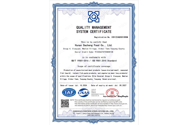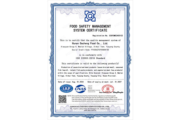 湖南大成食品有限公司(以下稱大成食品)于2007年成立,是一家集研發(fā)、生產、銷售為一體的現(xiàn)代化休閑食品企業(yè)。公司秉承為消費者謀品質,為合作者謀共贏的理念,不斷提升創(chuàng)新研發(fā)水平和自動智能化生產水平,持續(xù)為消費者提供高品質的休閑食品。